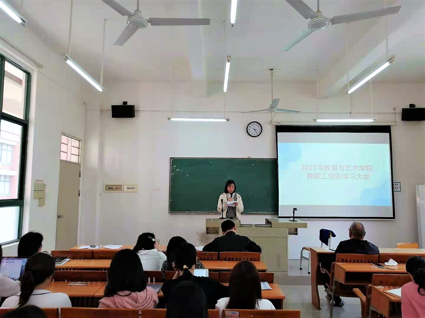 党支部书记罗琦琪从学校学风建设出发,总结了我院的学风建设情况,并带领全体教职员工重温党史,要求各教师党员不忘初心。最后,就学校即将举办的第七届师生趣味运动会进行了工作布置。