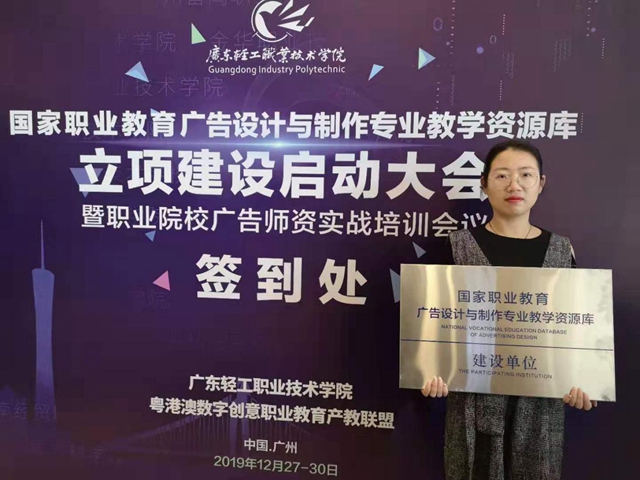 为了促进我系优秀团队建设,深化和提升资源库的建设质量和社会影响力,共同助力国家广告设计与制作专业教学信息化升级与创新发展,2019年12月27日,李虹澄教师赴广东轻工职业技术学院艺术设计学院主办的国家职业教育广告设计与制作专业教学资源库立项建设启动大会暨职业院校广告师资实战培训会议。