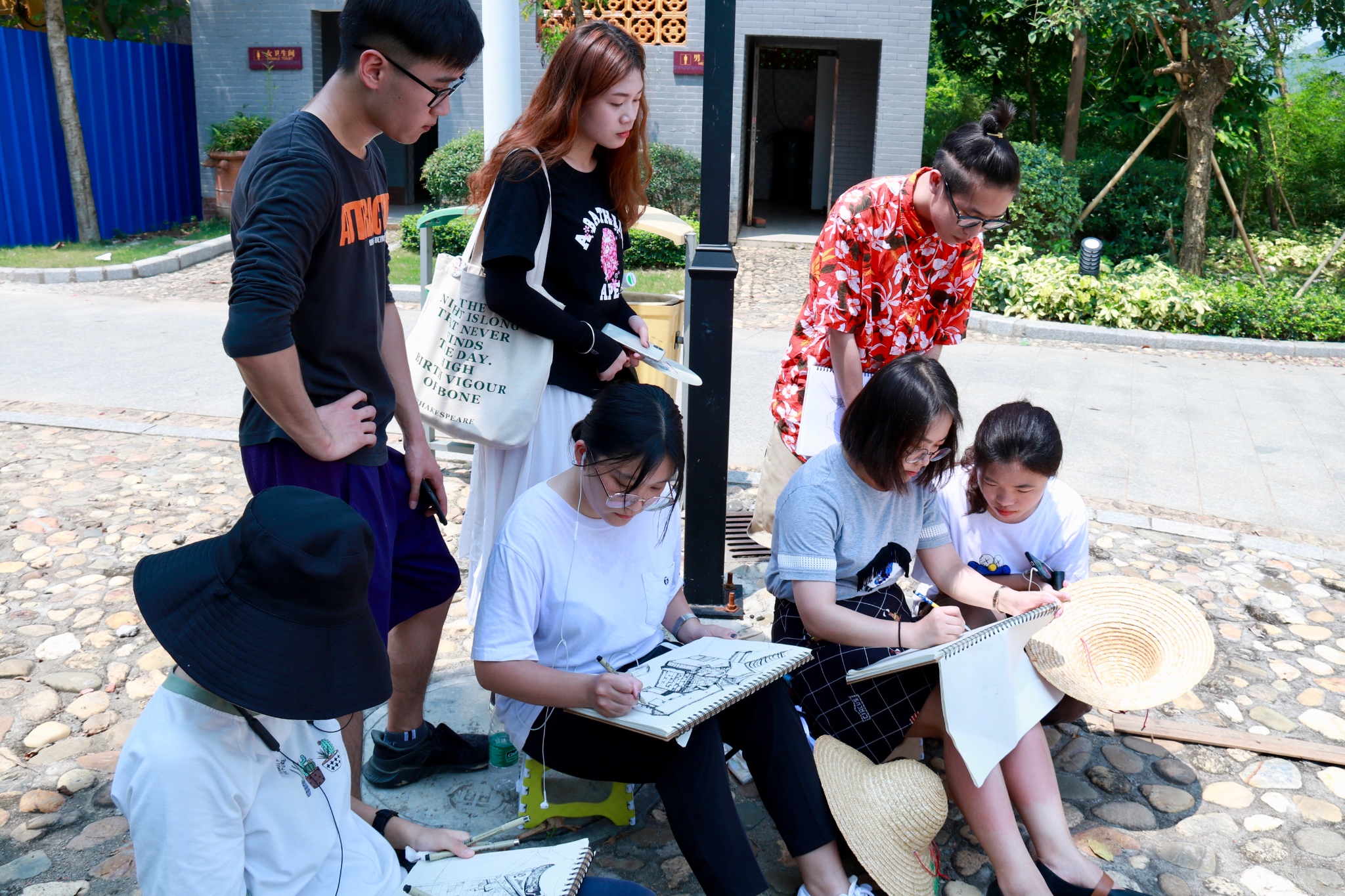 为了全面加强高等职业技术学院艺术設計学生的写生创作能力,并将写生创作基础应用到艺术設計课程的基础教育中,结合国务院办公厅关于全面加强和改进学校的美育工作的意见和文件精神,我系2018级艺术設計1、2班全体学生,在艺术設計系主任的动员下,由专业教师李虹澄、王晶晶、邓鹏、罗国智的带领,在广东郁南县兰寨村进行了为期8天7晚的风景写生课程。