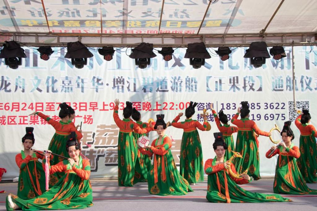 2022年6月24日上午,2022增城正果水上荔枝文化旅游节暨第四届广府龙舟文化嘉年华增江碧道游船(正果段)通航仪式在正果老街正式拉开帷幕。来自广州华商职业学院教育与艺术学院艺术团的学生们开展了异彩纷呈的歌舞表演,以学院特色为依托努力践行,助力乡村振兴。
