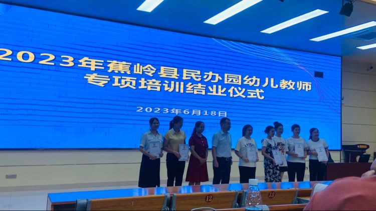 6月18日下午,举行了培训班结业仪式,我校赵景阁和莫柳莲老师向学员代表颁发了结业证书。至此,我校和蕉岭县合作开展的为期四天的第二期幼儿园培训工作圆满结束。