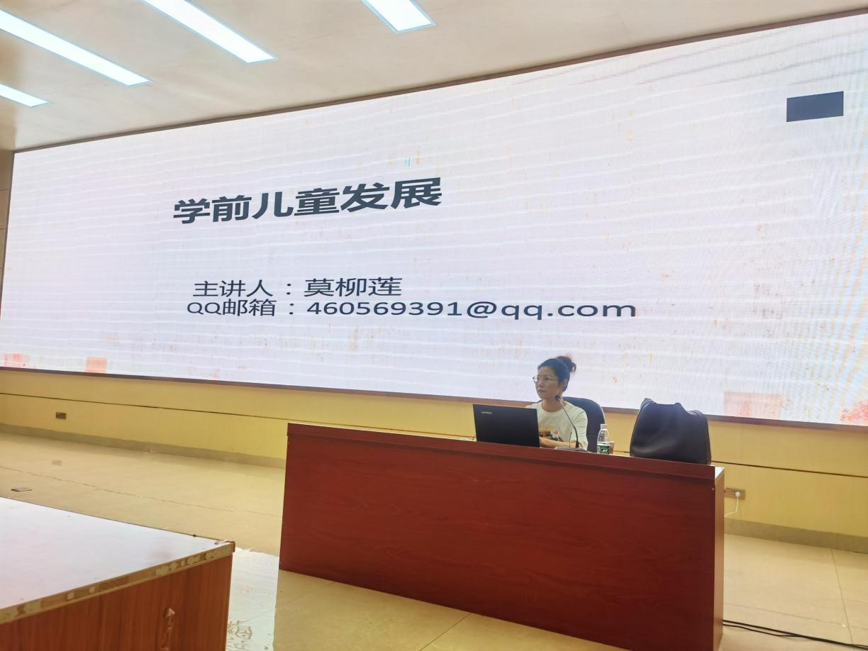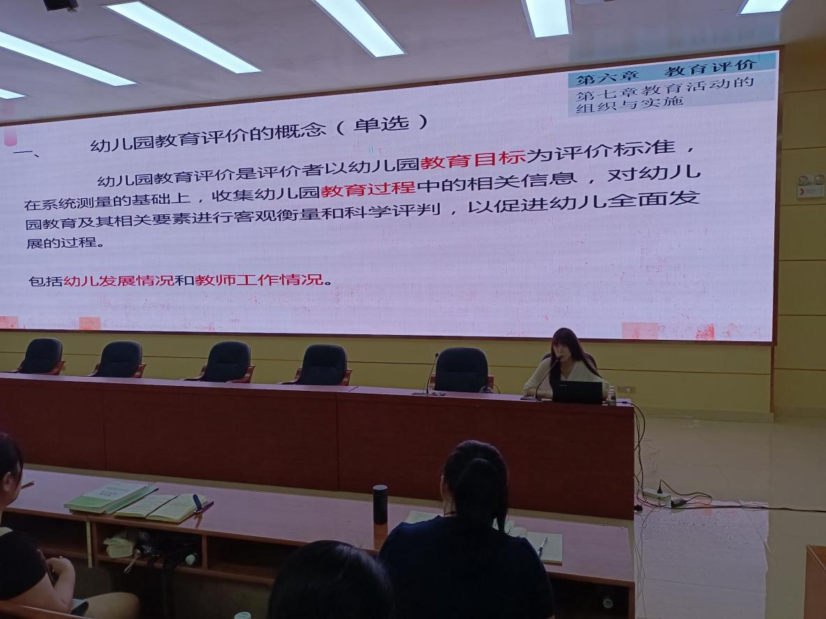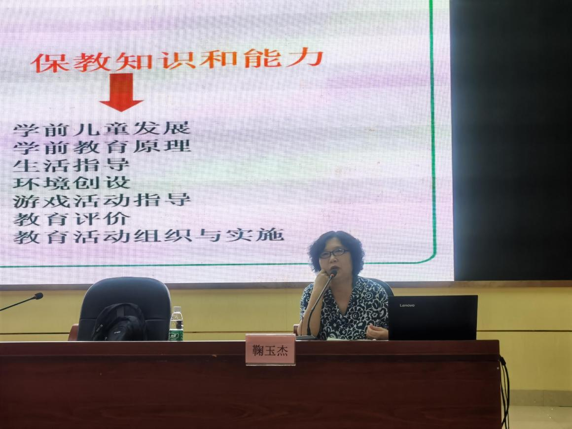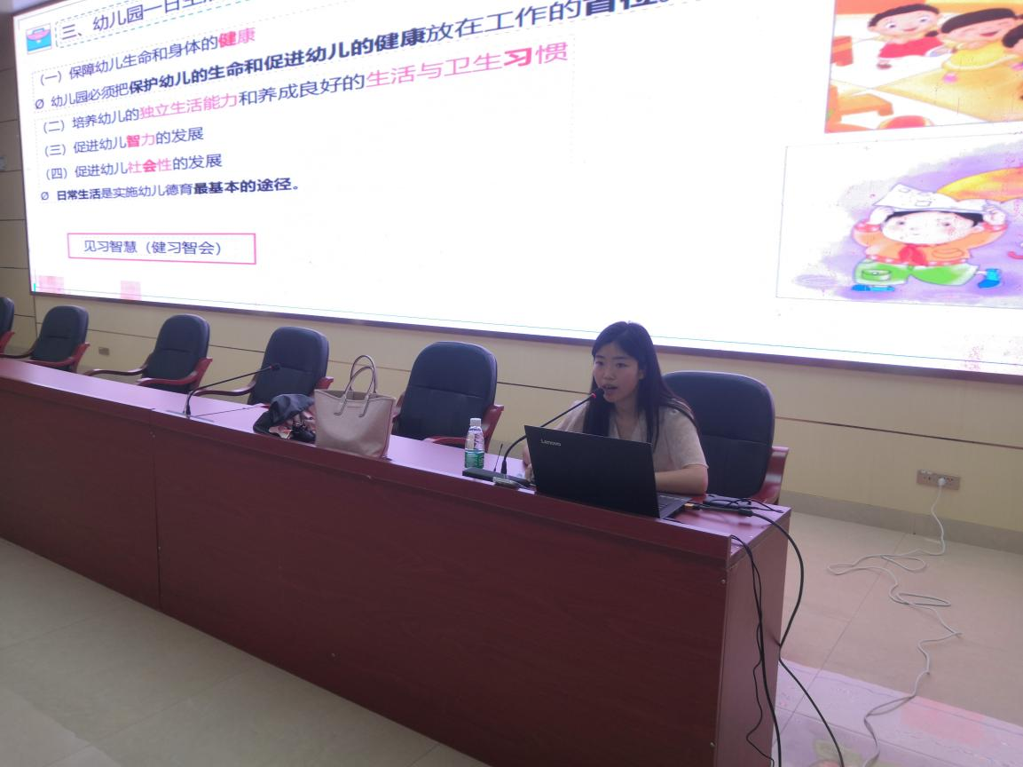 5月27日下午,王紫荆老师细致讲解了幼儿园的生活指导、环境创设、游戏指导等方面的知识,并结合幼儿常见的疾病和预防进行详细的介绍。