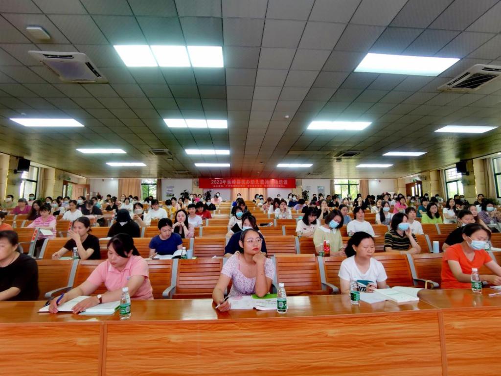 本期培训活动于5月27日上午在蕉岭县桂岭学校一楼阶梯教室隆重开班。我校人事处处长黄金荣、教育与艺术学院学前教育专业负责人鞠玉杰副教授、蕉岭县教育局教育股徐志东股长、蕉岭县教师发展中心副主任钟淼炎参加了开班仪式。蕉岭县民办幼儿园180多名幼儿教师参加了此次培训。