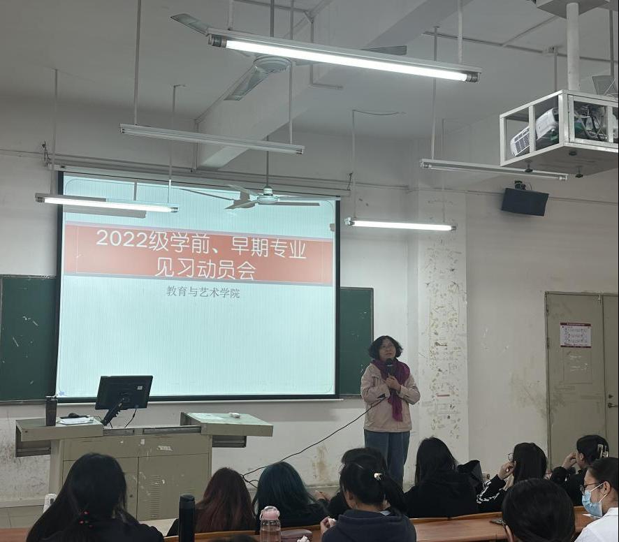 赵岩峰副院长、吴伟福副院长及学前教育、早期教育专业负责人出席了2022级学前教育和早期教育专业参与认识实习学生的动员大会。