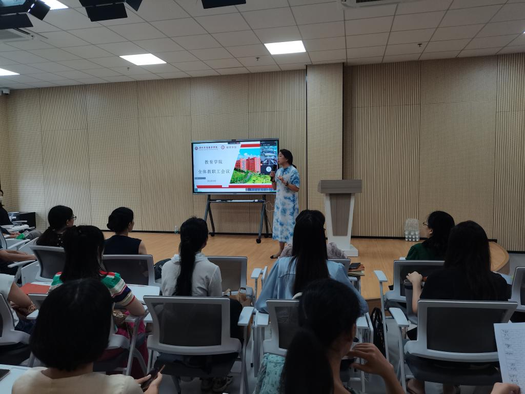 2024年9月27日12:30,教育学院在广州校区创科楼904和江门校区11D008创梦空间实训室以线上线下相结合的方式召开第二次全体会议。本次会议由刘玉娟院长主持,全院教职工齐聚参会,共谋学期新发展。