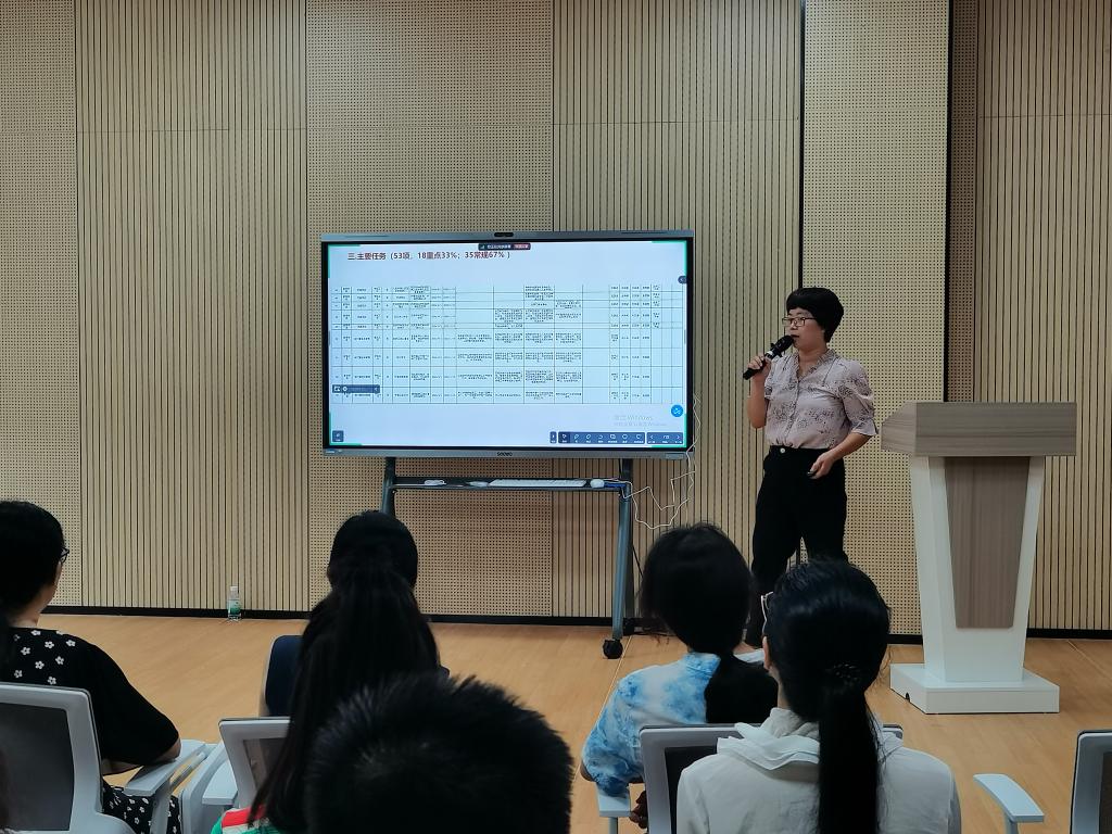 接着,陈少兰副院长从分管的专业与课程建设、教学运行与质量监控和教研与科研等工作,列出具体的6项重点工作和6项常规工作。通报开学以来教学中存在的问题,强调教学纪律的重要性。鼓励教师开展各项研究,争取突破更多科研项目。介绍“青蓝工程”具体实施方案,青年教师(青)可自行邀请骨干教师及专业负责人(蓝),结队后召开青蓝结对动员会,颁发聘书(10月底),并开始实施阶段(11月开始),最后是总结阶段(每个学期末)。