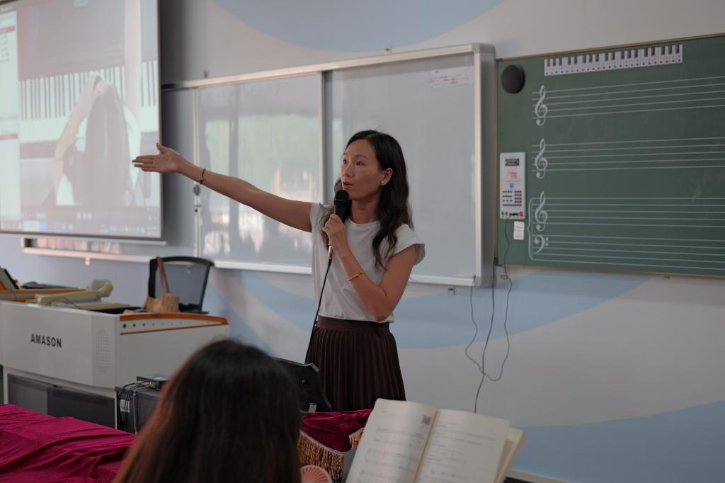 随后,刘玉娟院长陪同鲍校长及老师们重点参观了创科906钢琴教学实训室,刘院长表示目前实训室能满足以学前教育专业、早期教育专业、婴幼儿托育服务与管理专业的岗位能力为导向的实践教学与实训需求,为学生提供全面发展的舞台。专任教师李琴英老师详细介绍了智能钢琴教学系统,通过科技实现智能教学、兴趣教学及智能陪练等功能,有效提升了学生的学习效率与实训效果。