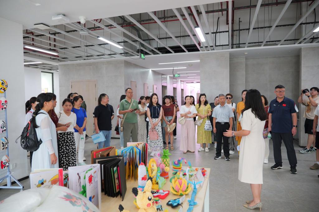 教育学院一直以社会需求为导向,能力培养为主线,构建了多学科交叉、专业互补的教育平台。 长治幼儿师范高等专科学校鲍志煊校长一行首先参观了教育学院学前教育专业学生作品展及实训室,教育学院实训教师马庆向长治幼专的领导和教师们介绍了我院学生手工绘本、文创产品设计、非遗手工制作、传统剪纸等不同类型的作品。老师们被学生们精美的作品所吸引,纷纷驻足欣赏。他们表示,通过实训不仅能够提升学生的美术技能,还能够培养学生的创造力和审美能力,对学生的全面发展非常有益。