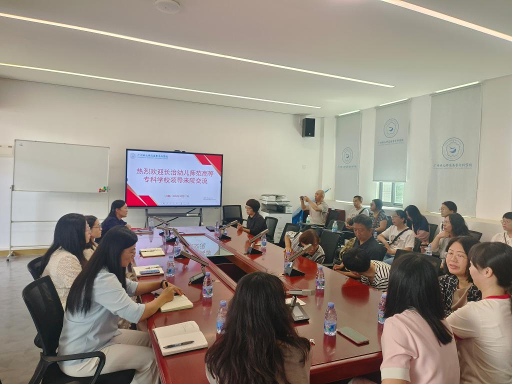 随后,陈少兰副院长、马庆老师陪同长治幼专学前教育专业的老师们前往广幼专学前教育学院座谈交流。学前教育学院负责人席小莉院长就课程设置、教学方法、实训室建设等方面进行了深入交流。陈少兰副院长分享了在教育教学中的经验和做法,希望能够加强校际交流与合作,共谋学前教育发展新方向。
