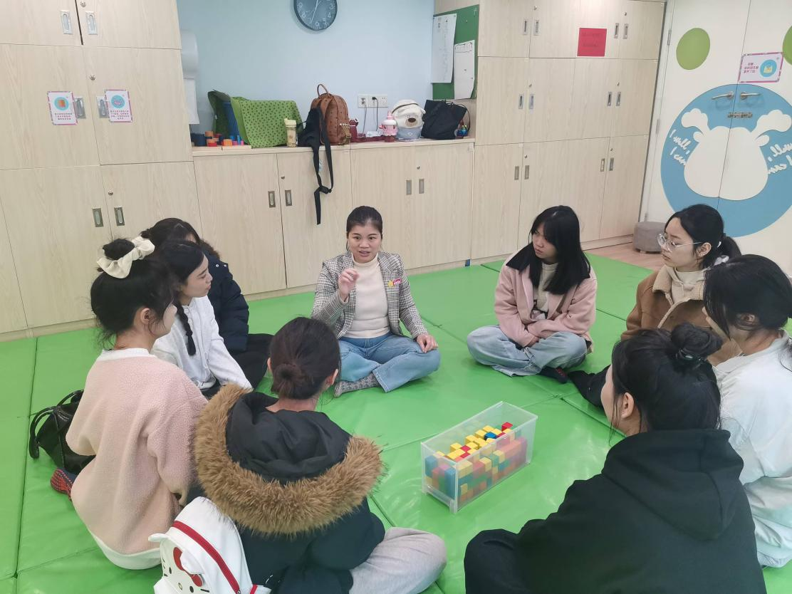 观摩结束后,全优加早教中心的资深教师与教育学院师生进行了深入的交流分享。他们详细介绍了全优加早教中心的课程体系、教学方法以及师资培养模式等核心内容。师生们积极提问,围绕课程设计、亲子关系引导、职业发展路径等问题展开热烈讨论,现场气氛活跃,学术氛围浓厚。