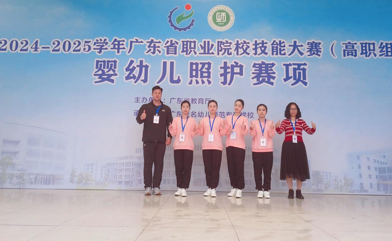 2025 年 3 月 14 日至 16 日,由广东省教育厅主办的 2024 - 2025 学年广东省职业院校技能大赛婴幼儿照护赛项在广东茂名幼儿师范专科学校举行。本次大赛吸引了全省 46 所职业院校的 162 名学生参赛,展现了广东省职业教育的高水平人才培养成果。教育学院学前教育专业的张文静、林思曼、朱慧、李嘉欣四位同学,在赵景阁、邹子博两位教师的指导下,凭借扎实的专业知识和出色的综合素养,从激烈的竞争中脱颖而出,荣获二等奖。这一成绩不仅是对参赛学生努力的肯定,也是教育教学成果的体现。