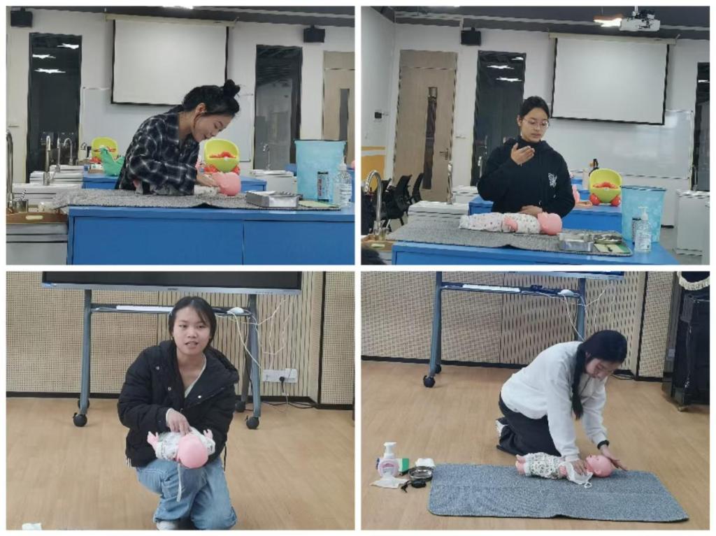 本次大赛严格对接托育行业岗位标准,分为技能展示和综合能力考核两大模块。技能展示包括婴幼儿生活照料、保健护理与急救处理、早期发展亲子活动设计等项目,全面考察选手的专业知识、操作技能和应急处理能力。备赛期间,参赛选手牺牲假期和周末,全身心投入高强度训练,展现出高度的责任感和拼搏精神。指导教师赵景阁和邹子博精心制定指导方案,从理论知识到实操细节严格把关,并带领学生进行现场观摩,提升实践能力。