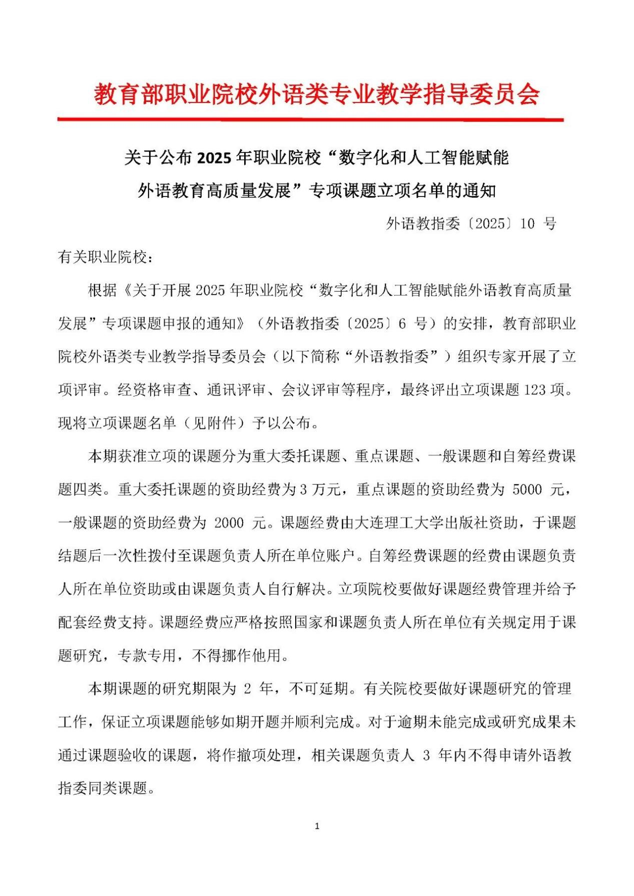 图1、2 课题立项通知