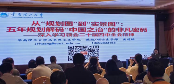 华南理工大学马克思主义学院黄建榕教授则全面解读了党的二十届四中全会精神,报告《从“规划图”到“实景图”:五年规划解码“中国之治”的非凡密码》全面深入浅出讲清了“十五五”规划演绎“中国之治”的完美逻辑。
