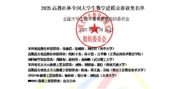 “高教社杯”全国大学生数学建模竞赛是中国工业与应用数学学会主办的国家级A类顶级赛事,入选“高校学科竞赛排行榜”,在高校中极具权威性与影响力。作为连接理论与实践的重要平台,竞赛要求选手在72小时内完成建模方案设计与论文撰写。本次获奖团队由不同专业学生组成,他们发挥学科交叉优势,分工协作、高效攻坚,充分展现了扎实的工程思维与创新能力。