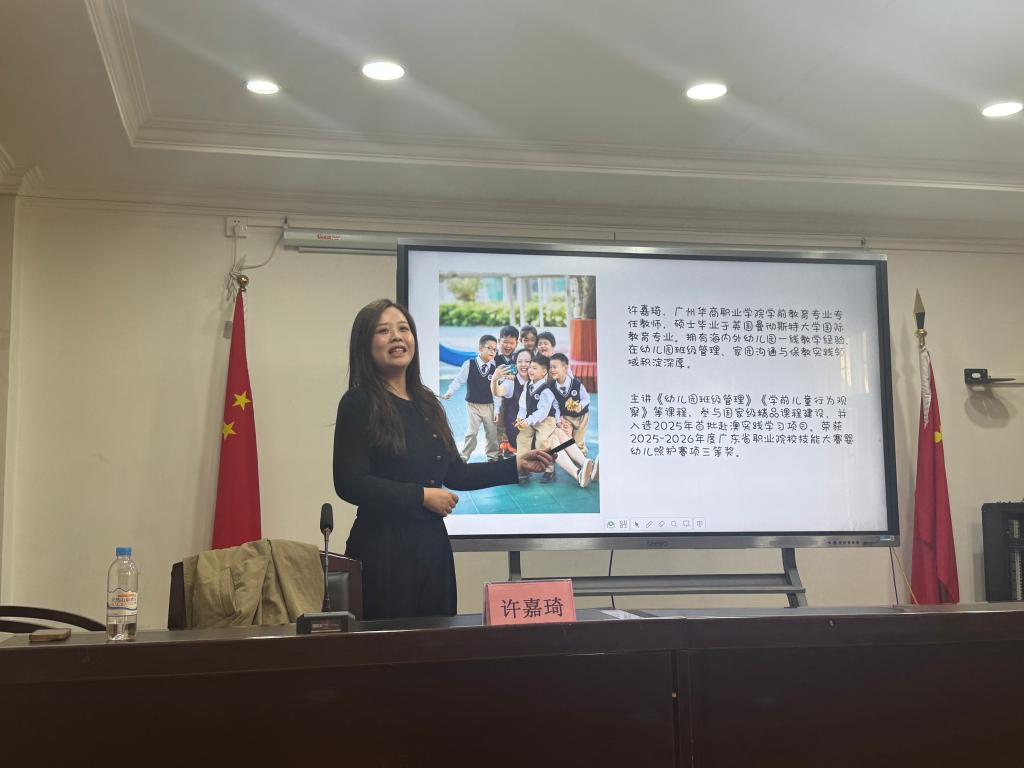 为深入贯彻落实《中华人民共和国学前教育法》,助力粤东地区学前教育高质量发展,持续深化校地教育帮扶合作,2026年3月14日至15日,广州华商职业学院派出学前教育专业教师团队,赴梅州市蕉岭县为当地34名公办和民办在岗未持有幼儿园教师资格证人员开展专项培训,以教育帮扶之力补齐县域幼教师资专业短板。此次培训由蕉岭县教育局主办、蕉岭县教师发展中心承办,是广州华商职业学院对口帮扶蕉岭县教育工作的又一重要实践。 图1 学校培训教师和蕉岭县教育局领导合影 本次培训内容主要涵盖学前教育政策法规、儿童发展规律、保教实践、活动设计、家园共育、职业伦理等核心板块,全方位贴合在岗未持有幼儿园教师资格证教师的专业成长需求,助力其夯实理论基础、提升实操能力。培训过程中,我校专业教师各展所长,以专业的讲解、丰富的案例为参训教师带来干货满满的课堂。 图2 鞠玉杰老师为学员授课 鞠玉杰副教授结合三十余年幼教一线经验,深入解读儿童发展规律,引导教师读懂幼儿行为背后的成长逻辑,树立科学保教理念。 图3 赵景阁老师为学员授课 赵景阁副教授聚焦幼儿园活动设计与组织实操技巧,从五大领域融合视角,系统传授以儿童为中心的教学设计方法,让教师掌握实用的活动组织策略。 图4 黎秋名老师为学员授课 黎秋名老师以学前教育政策法规与职业伦理为主题,结合典型案例开展教学,强化教师的法治意识与师德修养。 图5 许嘉琦老师为学员授课 许嘉琦老师分享海内外家园共育与保教实践一线经验,助力教师提升沟通技巧与家园协作能力。培训期间,蕉岭县参训教师展现出良好的学习风貌,积极参与课堂交流,课堂互动氛围热烈,认真完成课堂笔记、研修日志等学习任务。 图6 学员认真做笔记,积极参与课堂互动 此次专项培训,是广州华商职业学院落实教育帮扶责任、服务地方教育发展的生动体现。学校不仅派出资深教师团队专程授课,还主动承担全部授课费用,以实际行动彰显高校的责任与担当。自与蕉岭县建立教育帮扶合作关系以来,广州华商职业学院始终聚焦当地教育发展需求,在师资培训、资源支持、教研交流等方面持续发力,为蕉岭县教育提质升级注入源源不断的动力。未来,广州华商职业学院将继续深化与蕉岭县的校地教育帮扶合作,围绕幼教师资队伍建设、学前教育教学研究等方面持续发力,推出更多精准、高效的帮扶举措,与蕉岭县携手推动学前教育高质量发展,共同办好人民满意的学前教育。 文:赵景阁 图:黎秋名 初审:李瑜 复审:马庆 终审:沙园松