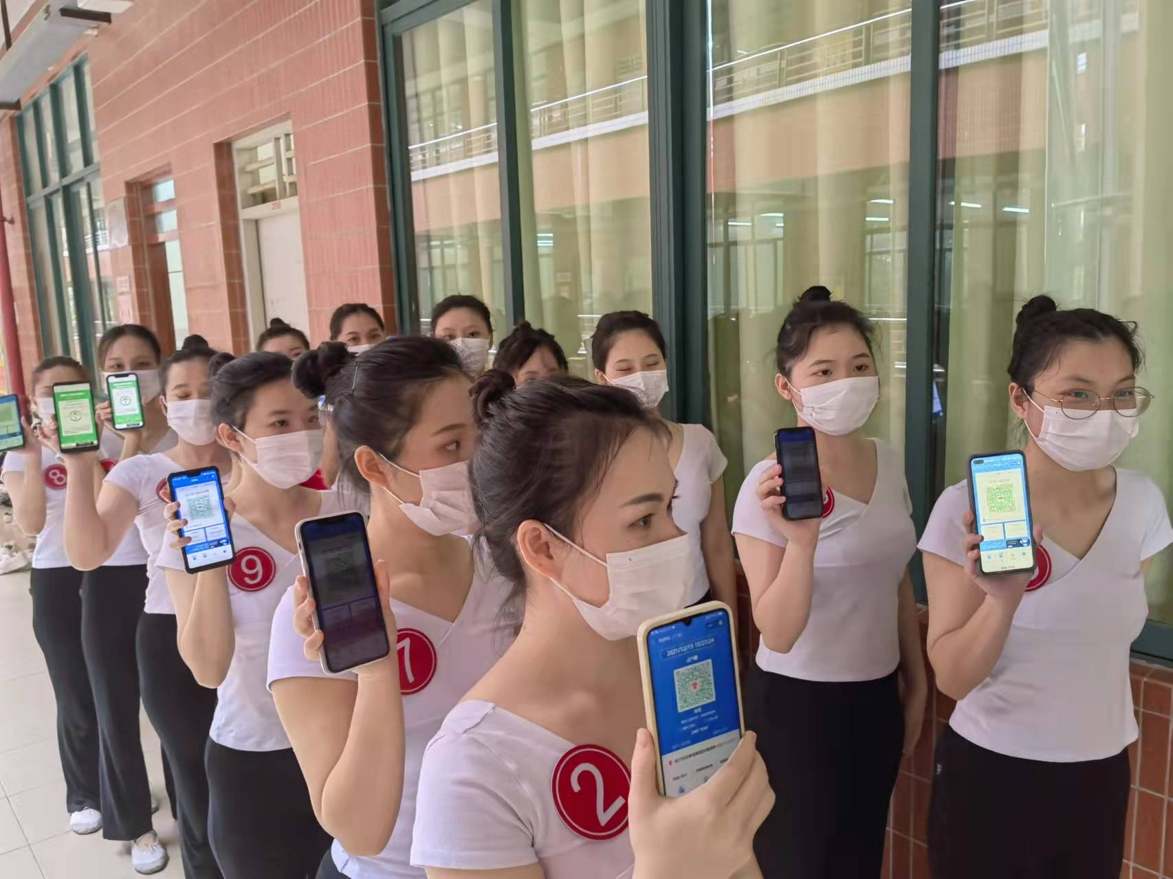 图为中国民族民间舞蹈等级考试入场健康码检查