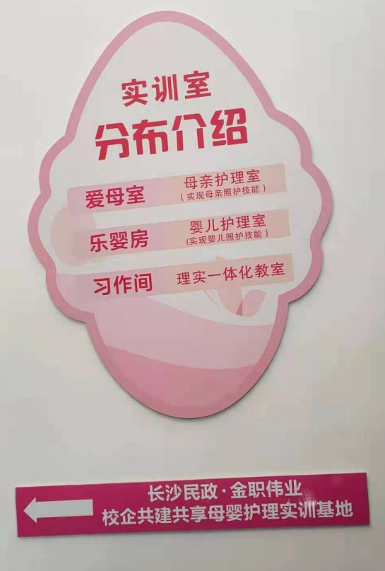 图为长沙民政职业技术学院·金职伟业“校企共建共享母婴护理实训基地”