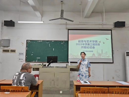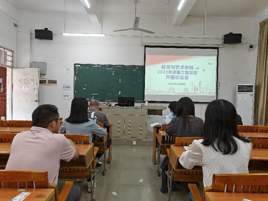 2023年10月7日上午9:00,教育与艺术学院在博B206举行了质量工程项目开题论证会暨校级科研项目立项开题仪式。出席会议的专家有教育与艺术学院院长刘玉娟教授、副院长赵岩峰教授和室内艺术设计专业负责人郑志强副教授。此外,答辩成员周航宇、曾翠凤、蔡筱斌、徐亮、苏丽华以及万雨老师参与了此次会议。本次会议由副院长赵岩峰教授主持。