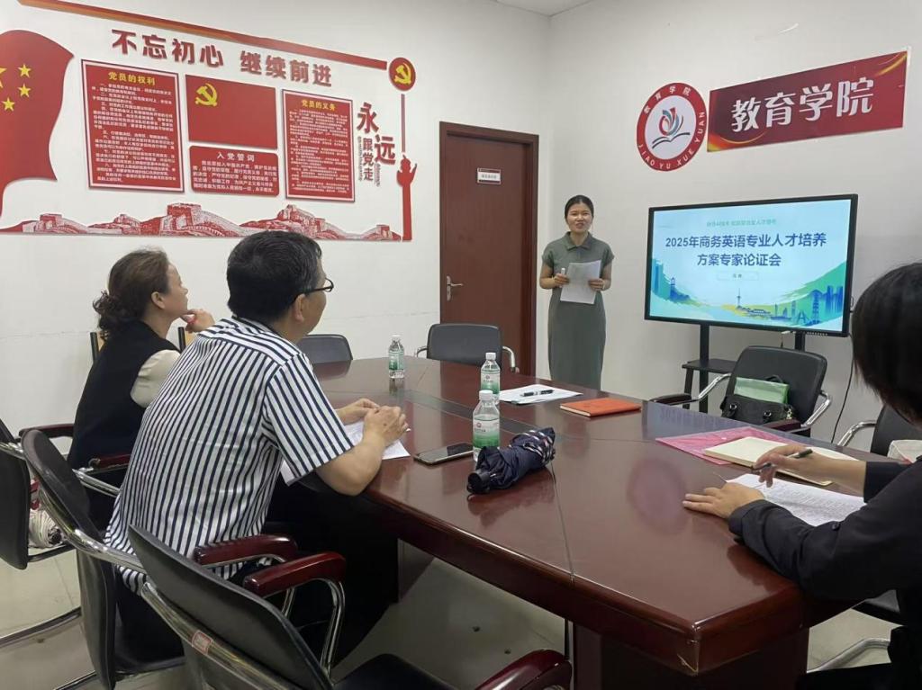 为进一步完善教育学院2025级商务英语专业人才培养方案,促进专业建设高质量发展,切实提高我院人才培养质量,2025年5月23日上午10时,教育学院组织并召开了2025级商务英语专业人才培养方案专家论证会。
