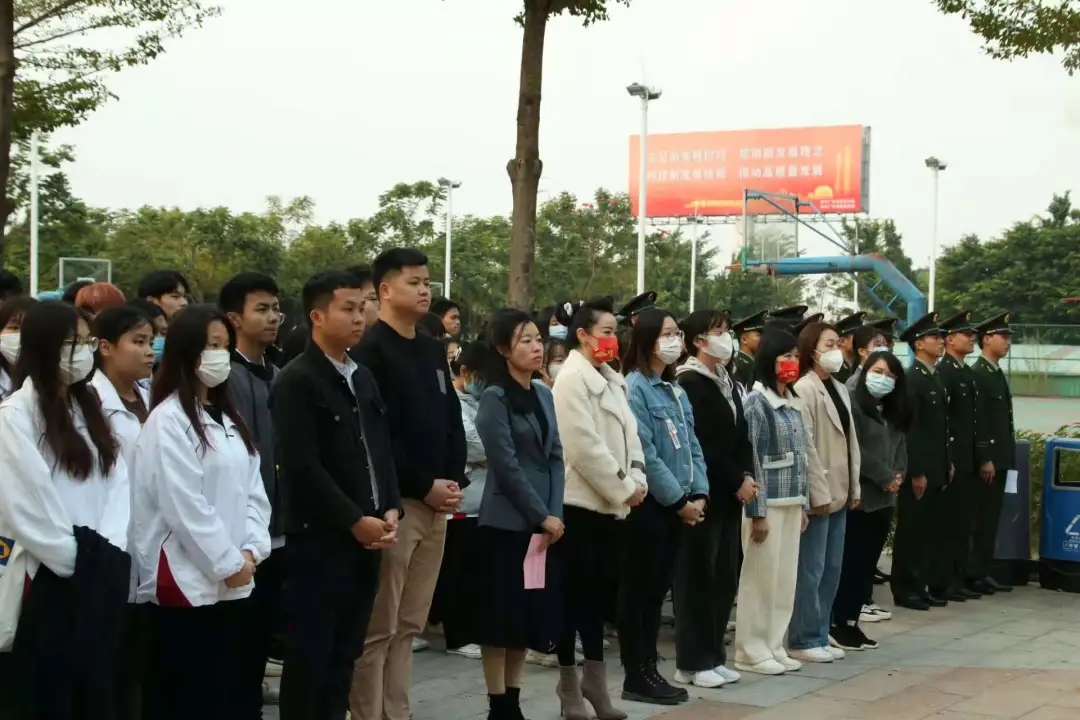 2021年12月13日是第八个纪念南京大屠杀死难者国家公祭日。为了铭记这一历史,缅怀遇难的同胞,我院于13日早上7:15分在创新楼前举行“勿忘国耻,振新中华”爱国教育主题升旗仪式。参加本次升旗仪式的有校党委办公室主任邓秀芬老师、学生处征兵办公室副主任蒋锦宏老师、教育与艺术学院党总支副书记罗琦琪老师、学生党支部书记李敏老师、团总支书记闫志达老师、辅导员陈漾老师、苏丽华老师、沈锶佩老师、李佩静老师,以及教育与艺术学院全体学生党员、20、21级入党积极分子。