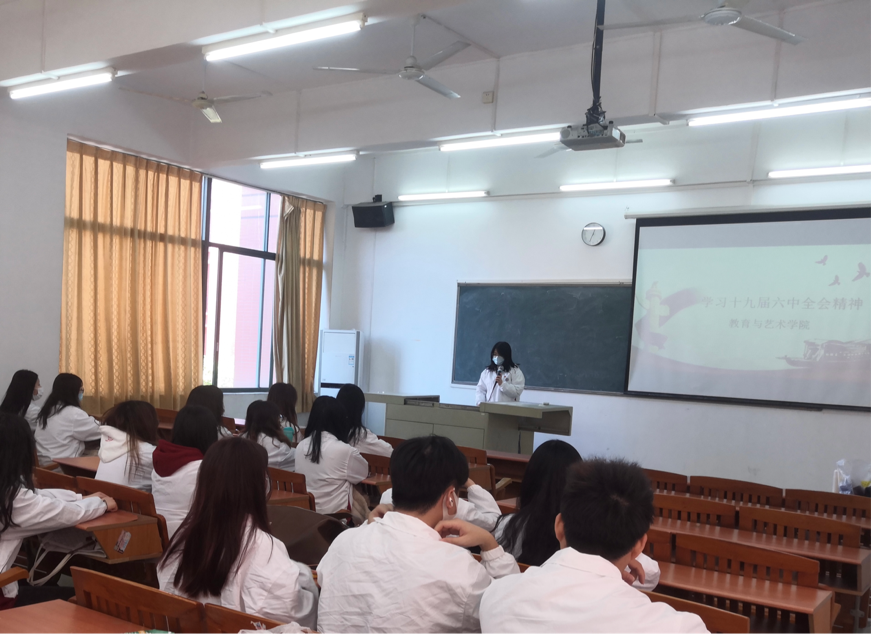为深入学习宣传贯彻习近平新时代中国特色社会主义思想,聚焦主责抓学习、围绕主业抓发展、强化理论武装、推进实践创新,教育与艺术学院学生党支部组织学生党员于11月24日中午12:30在创教楼408召开学习党的十九届六中全会精神座谈会。