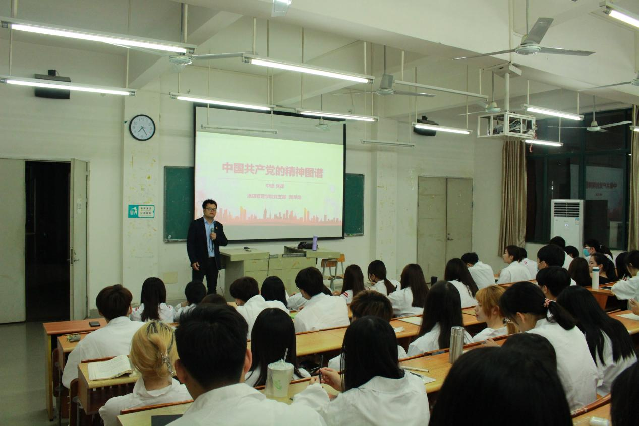 2021年4月19日晚上19点10分,教育与艺术学院、健康医学院、酒店管理学院在博B201召开了第二十三期中级党课培训班开班仪式以及第一讲:中国共产党的精神图谱,本次主讲老师是酒店管理学院党支部—萧早荣。