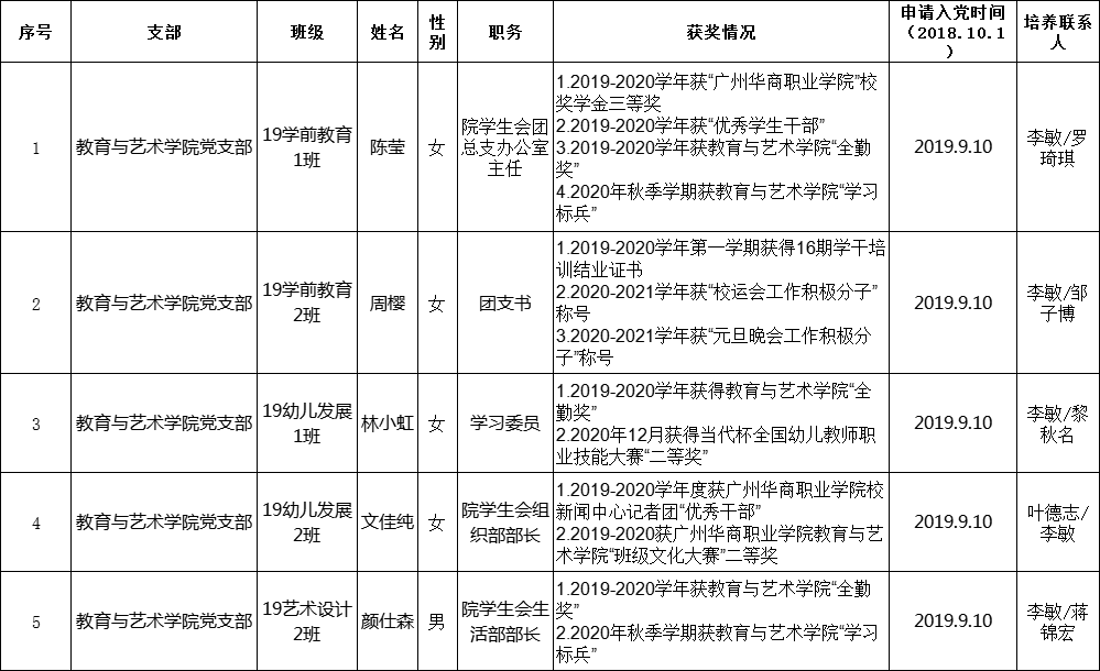 为增强党员发展工作的民主性和透明度,更广泛地接受群众监督,保证党员发展的质量,现向全院公示。凡对公示人选有异议者,请在公示期内实事求是、客观公正地向教育与艺术学院党支部反映。