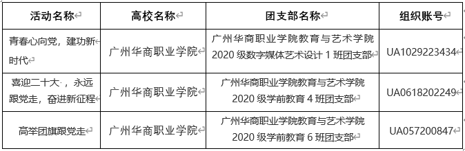 为全面贯彻党的十九大和十九届历次全会精神,深入落实习近平总书记关于青年工作的重要思想、激励广大华职团员青年建功新时代的强烈使命担当,全面了解新时代党和国家事业发展的伟大成就,以迎接和学习贯彻党的二十大为主线,结合庆祝建团100周年有关工作部署,我院团支部积极响应团省委的号召,开展了“活力在基层”的主题团日活动,经学校推荐和团省委遴选,我院20数字媒体艺术设计1班、20学前教育4班、20学前教育6班团支部荣获2022年广东省高校“活力在基层”主题团日活动竞赛春季赛季获评“千入围”项目。