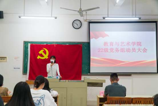 2022年10月12日晚,教育与艺术学院党务组在博C306召开22级新干事见面动员大会。本次会议由黄子凡同学主持。出席本次会议的有教育与艺术学院学生党支部书记李敏老师、组织委员闫志达老师、宣传委员沈锶佩老师。
