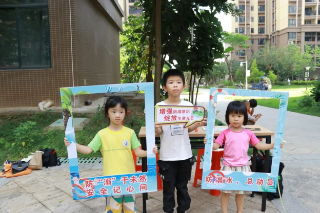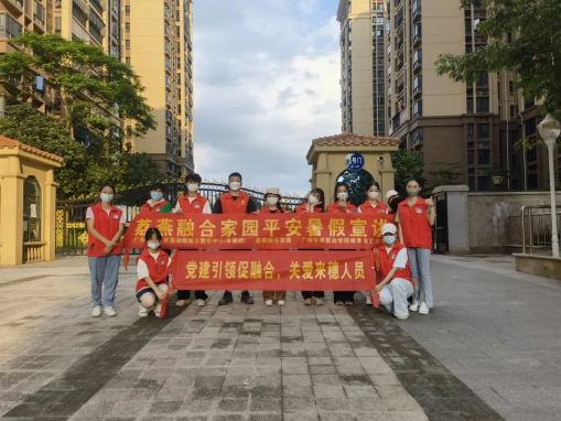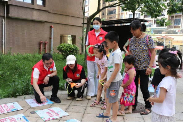 6月25日下午联合广州华商职业学院教育与艺术学院党总支组织红燕先锋党员志愿者、来穗党员志愿者等在五一村开展平安暑假防溺水主题宣讲活动,现场共分咨询区、签到区、学习知识区、知识辩答,通过拍一拍 圈一圈等丰富有趣的活动方式,给小朋友和家长们普及安全知识,帮助来穗人员子女度过一个平安、快乐且有意义的假期。