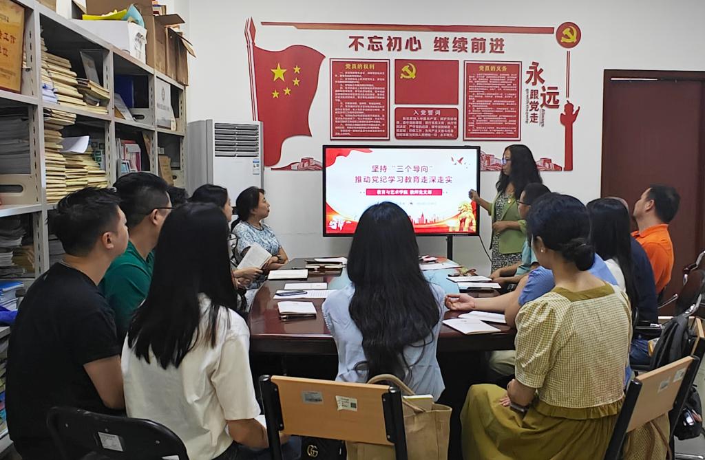 5月30日,教育与艺术学院教师党支部在博A309顺利开展党纪学习会议,出席自荐会人员有教育与艺术学院党总支书记刘玉娟、教师党支部副书记赵景阁以及全体党员同志。