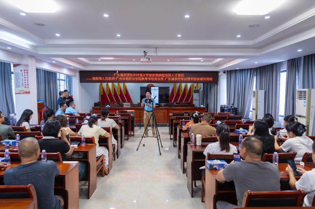 为进一步助力“百县千镇万村高质量发展工程”,推动学院党建“双创”培育创建工作,强化与党建红联共建单位的工作业务联系,深化校地合作,服务区域高质量发展,2025年10月15日上午,由广州华商职业学院教育学院党总支携手翁源县周陂镇人民政府、广东省农村专业技术协会,共同举办的“2025年乡村振兴系列活动——科技专家行暨新媒体短视频人才培训”在韶关市周陂镇顺利开展。本次“深化校地合作,助力乡村振兴”农产品专业技术调研及培训活动,通过实地调研、专题座谈与技能培训相结合的形式,为当地乡村振兴注入了科技与人才的强劲动力。
