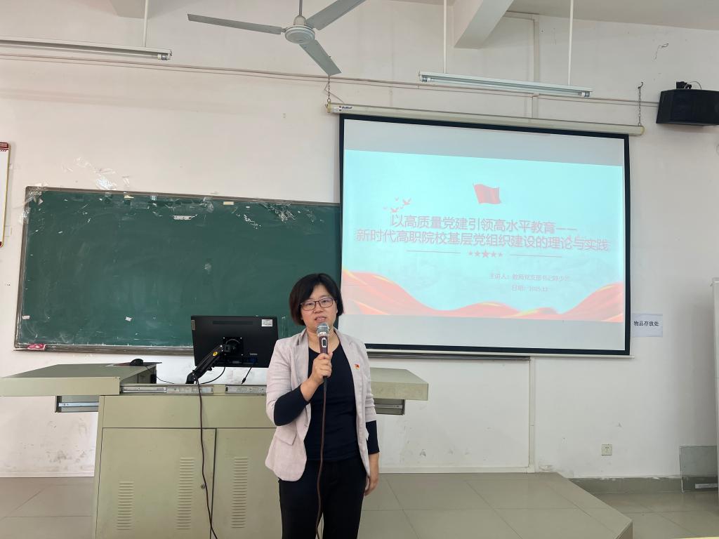 陈少兰结合学院党建工作实际,提出了三项具体举措。一是强化政治建设,筑牢思想根基。要常态化开展理论学习,推动习近平新时代中国特色社会主义思想入脑入心,引导党员教师增强“四个意识”、坚定“四个自信”、做到“两个维护”,自觉把个人教学科研工作融入学院发展大局。二是建强支部队伍,激活先锋动能。要严格党员教育管理,发挥党员教师的先锋模范作用,推动党员在课程思政建设、教学改革、志愿服务等工作中带头示范,以党员骨干力量带动全体教师凝心聚力。三是深化融合赋能,提升育人实效。要找准党建与教育教学的结合点,将党建工作融入课程开发、课堂教学、实训实践等环节,通过“党建+课程思政”“党建+教学创新”等模式,实现党建工作与教育教学同频共振、互促共进。