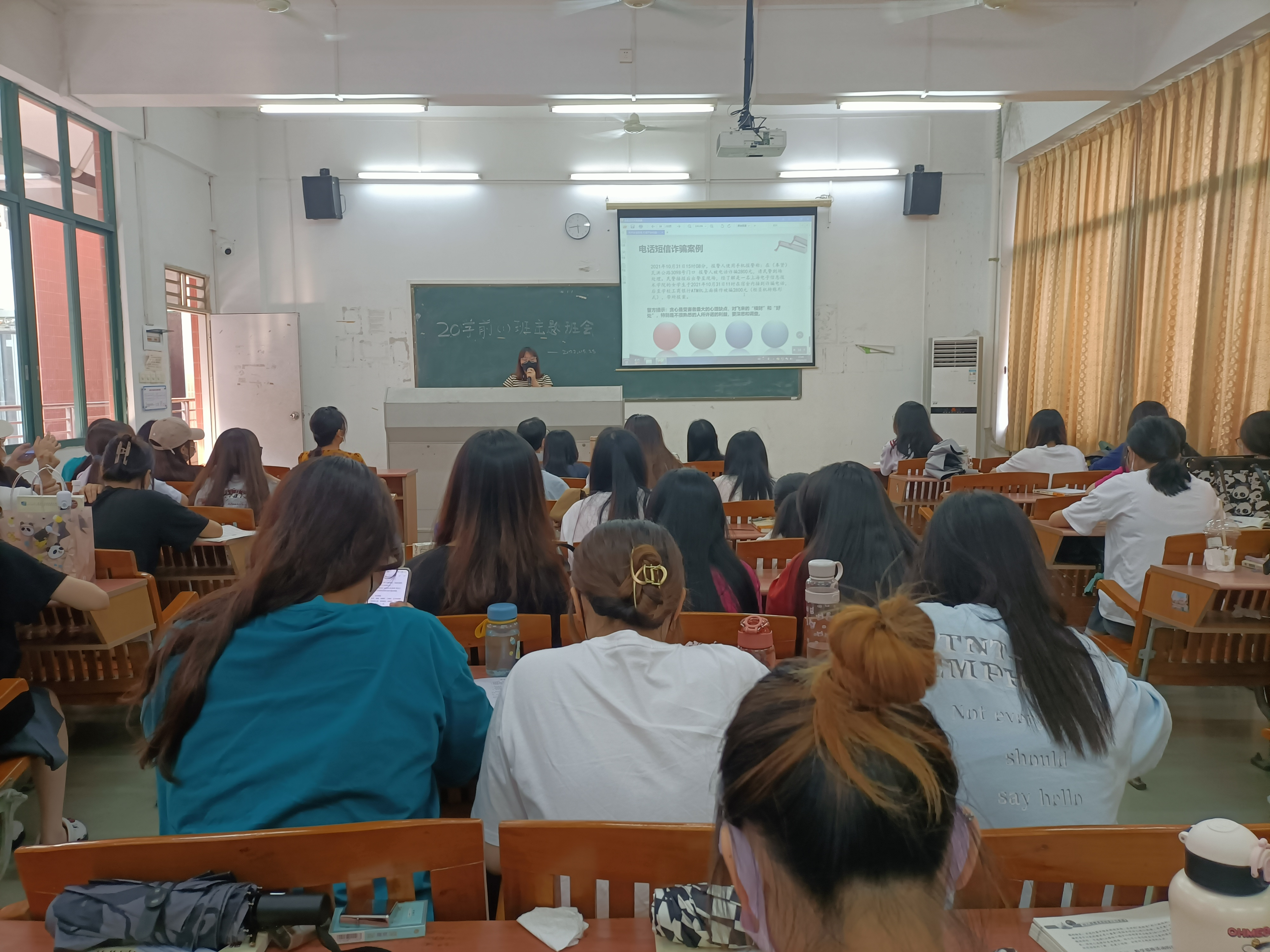 2022年5月25日下午17:40时,20级学前教育1班在创教405举行大二第二学期第三次班会,本次班会的主题是——筑牢安全防线 打造平安校园,主讲人为班主任黎秋名。