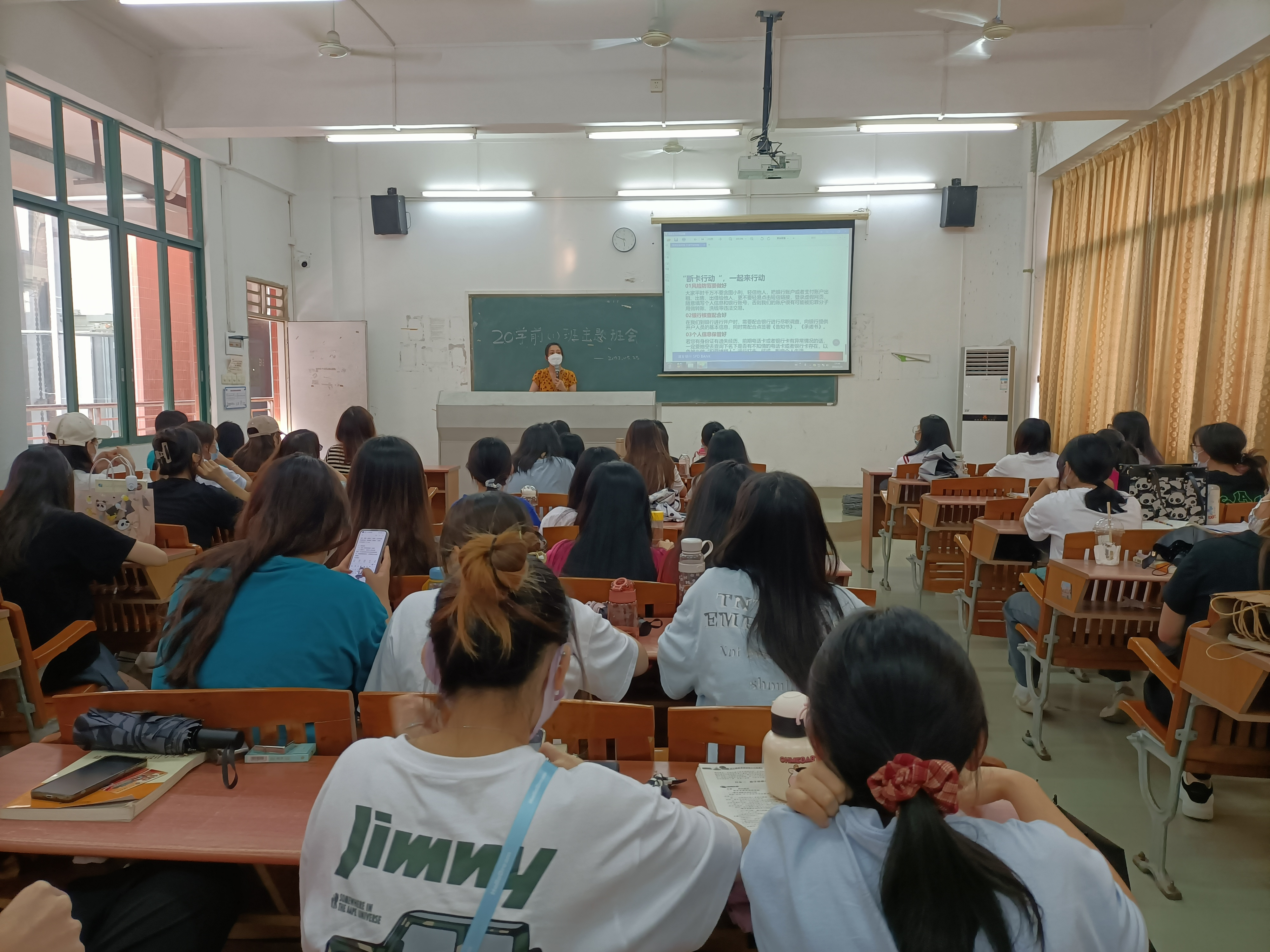 最后是打击非法买卖银行卡(账户)班主任讲述了什么是断卡行动,为什么要实施断卡行动;个人账户使用建议:还有买卖银行卡的惩戒措施。