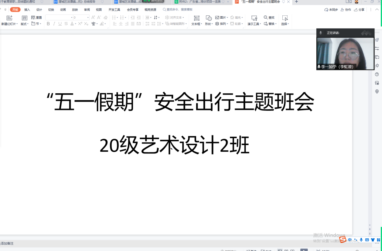 2022年4月28日晚,艺术设计二班在线上腾讯会议召“五一假期”安全出行主题班会,此次班会由班主任李虹澄老师主持,班会主要内容如下: