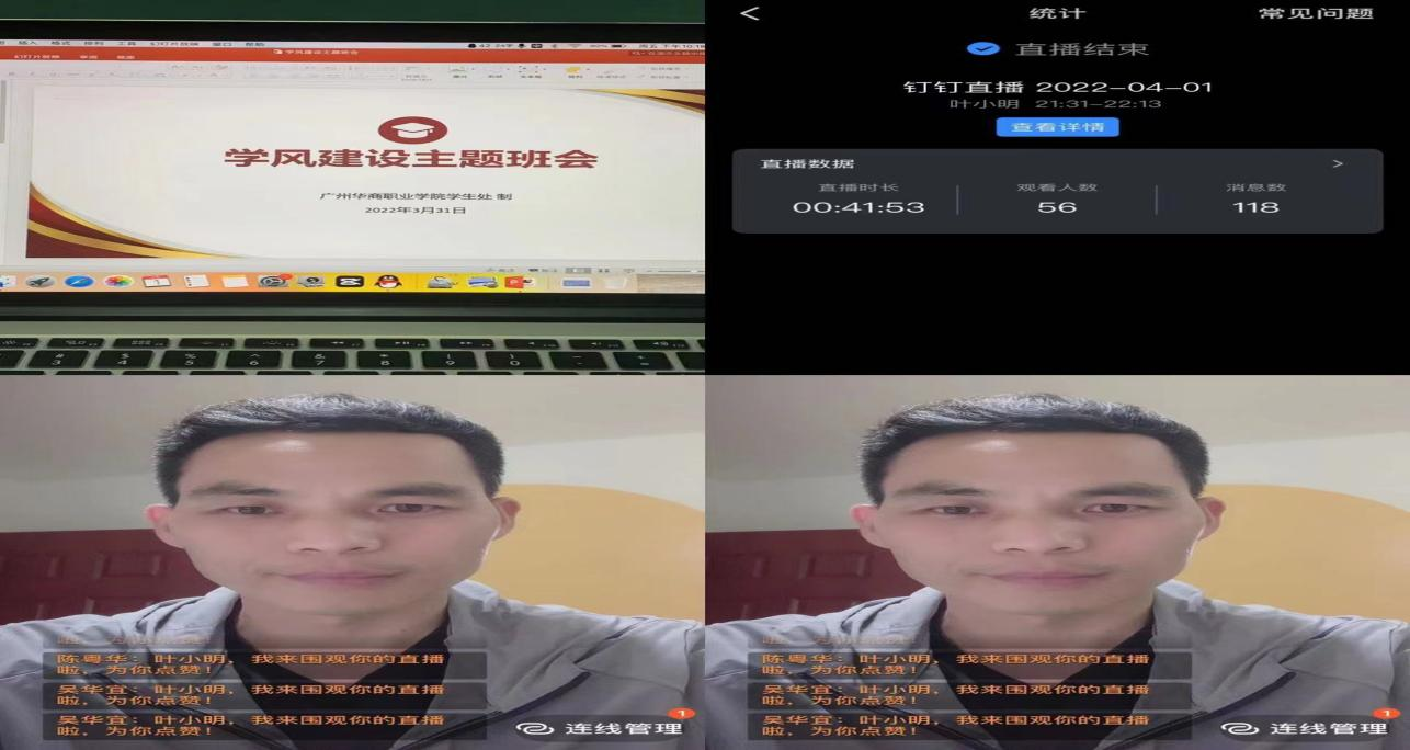 21学前教育1班于2022年4月1日星期五晚上9:30召开清明假期前的线上班会课,参加本次线上班会的有班主任叶小明老师以及21学前教育1班全体同学。