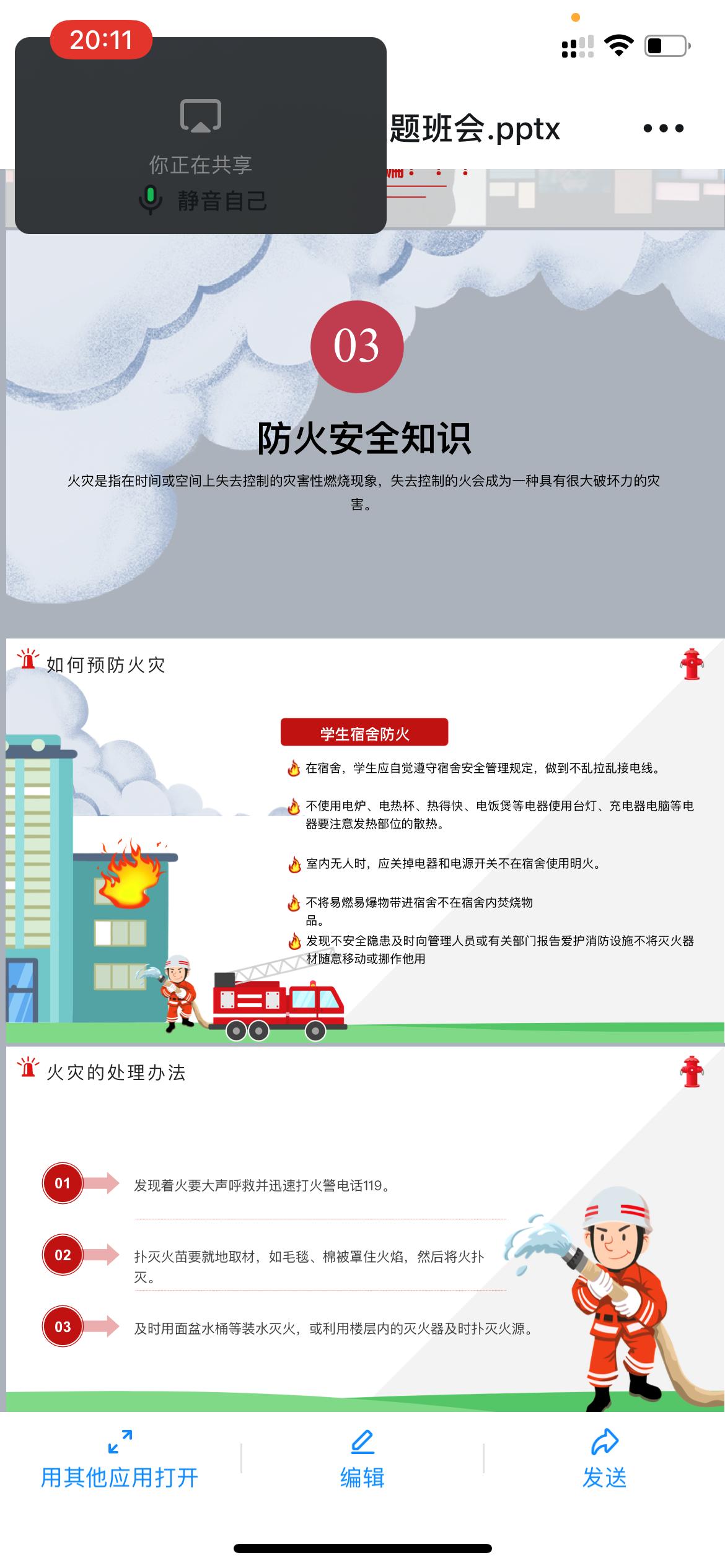 3.防火安全知识:学生宿舍防火(不乱拉乱接电线,不使用高电功率电器,不在宿舍使用明火等),火灾的处理办法(发现着火要大声呼救并迅速打火警电话119,扑灭火苗要就地取材,用灭火器扑灭火源),逃生技巧(迅速撤离法,低身前进法,毛巾捂鼻法)等;