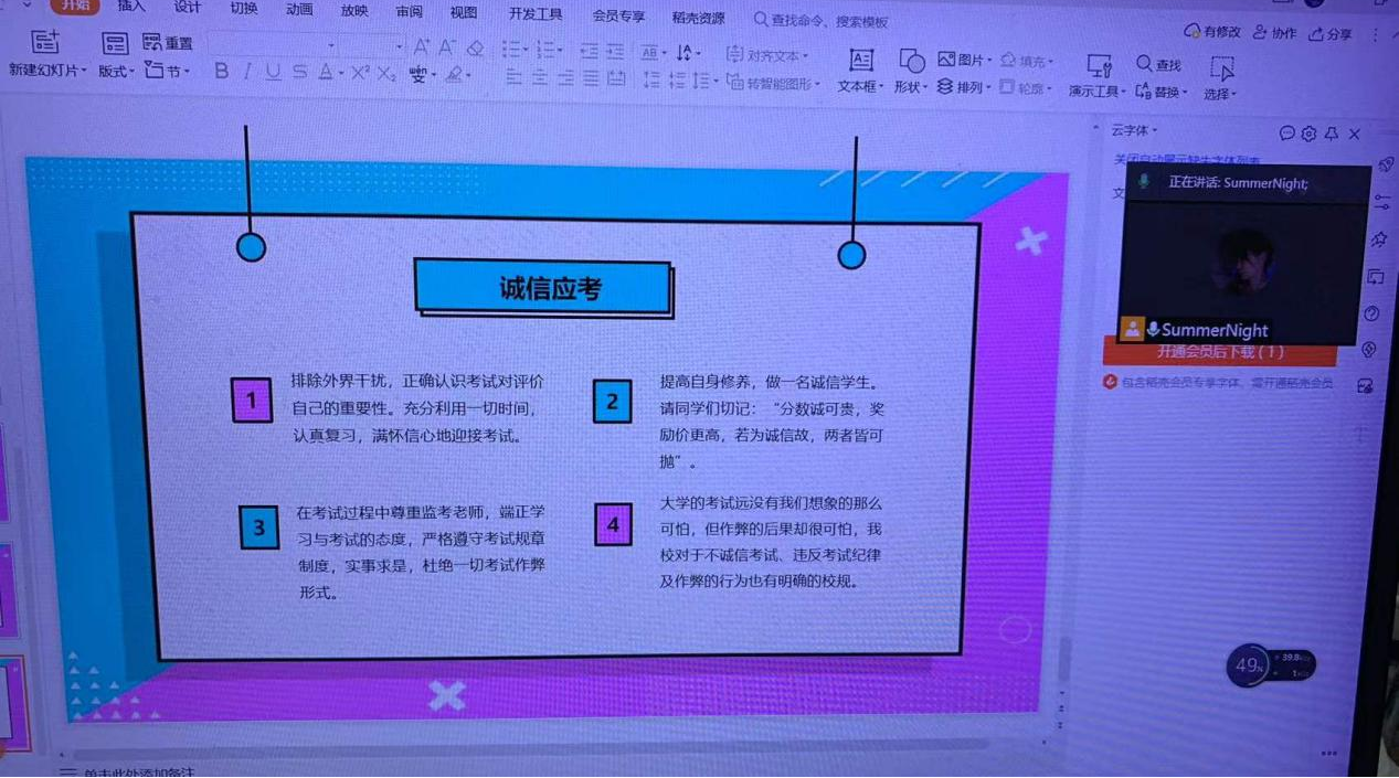 2021年12月28日晚,21级学前教育2班举行了诚信考试主题线上班会。
