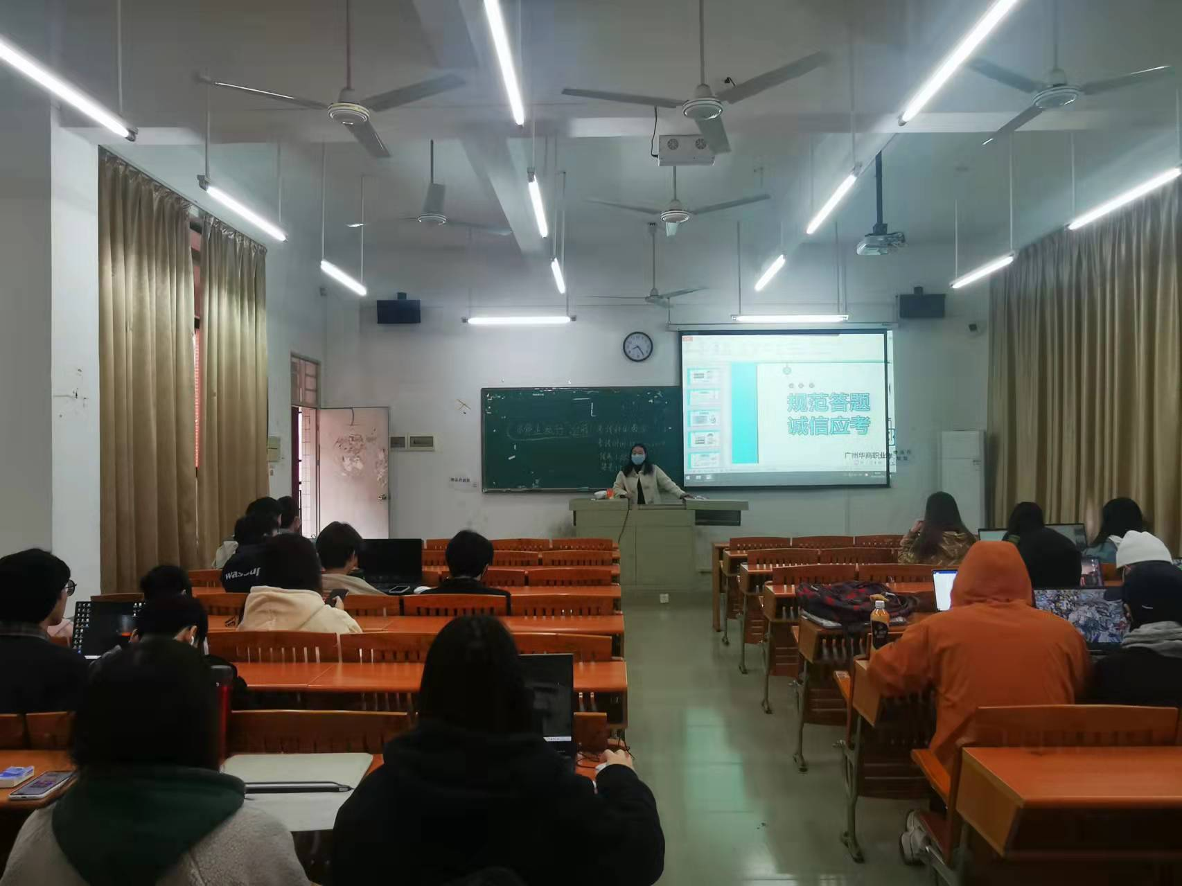 2021年12月29日上午8:30教育与艺术学院2020级室内设计2班在博B206开展了“规范答题,诚信应考”的主题班会。会议由班主任万雨主持,室内设计2班49人参加了班会。会议围绕分析考试作弊原因、不诚信考试的后果、作弊危害心理健康、大学生作弊八大心理四个部分展开。班主任万雨在会上表示:同学重视学习,重视考试,懂得诚实守信必须从我做起,从现在做起,落实在日常的学习生活中。此次班会让同学们了解到了诚信考试的重要性以及作弊的危害性。最后,班主任对于这次班会进行了深刻的总结,并告诫我们不仅要在考试中诚信,更要在生活中的方方面面坚守诚信这个底线。