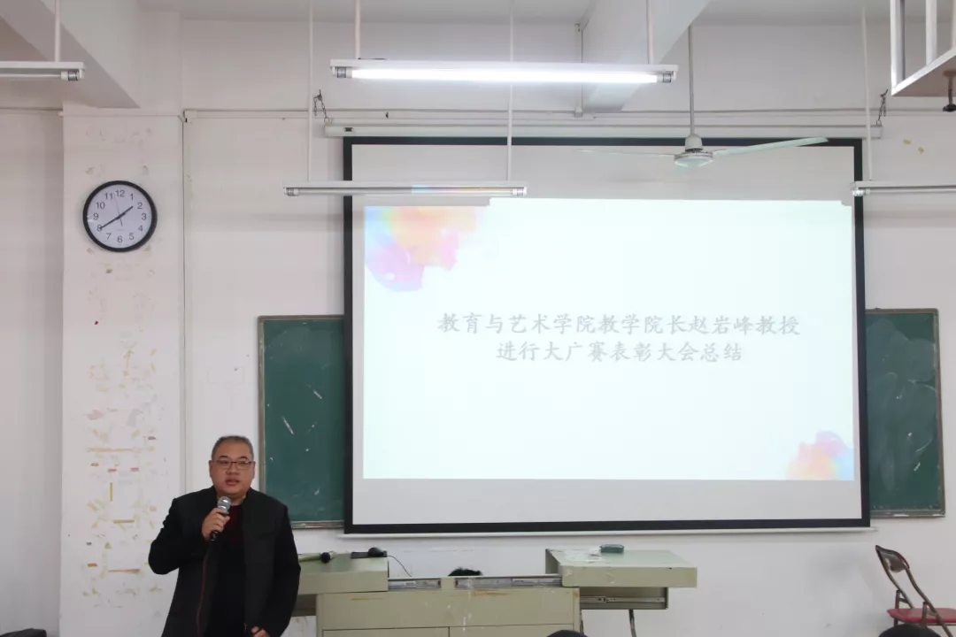 大会开始首先由赵岩峰教学院长为本次表彰大会致辞。赵岩峰教学院长致辞中表示,大广赛是由省教育厅盖章的奖项,含金量较高的比赛。同学们要多参与各项比赛锻炼自己,提升专业能力,做到课赛结合,能够参与国家级的大赛,对未来的就业也是极有帮助的。希望同学们能够积极踊跃的参加各项大赛。