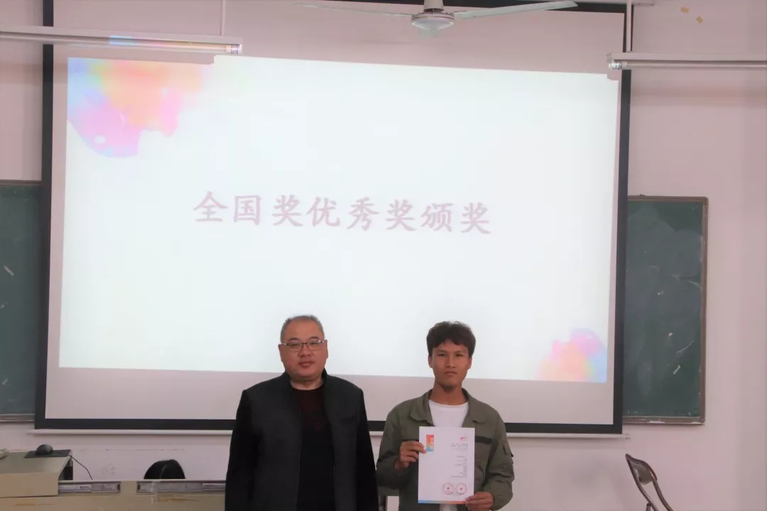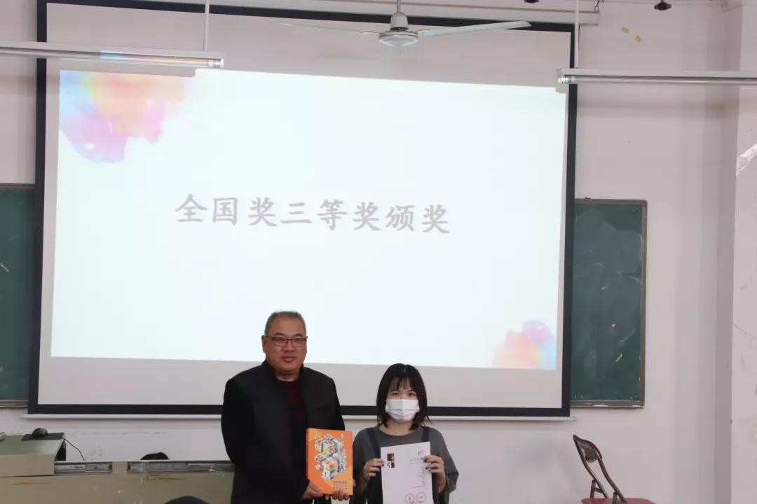 大会第四项由赵岩峰教学院长为获得全国奖优秀奖、全国奖三等奖的同学及指导老师颁发证书。