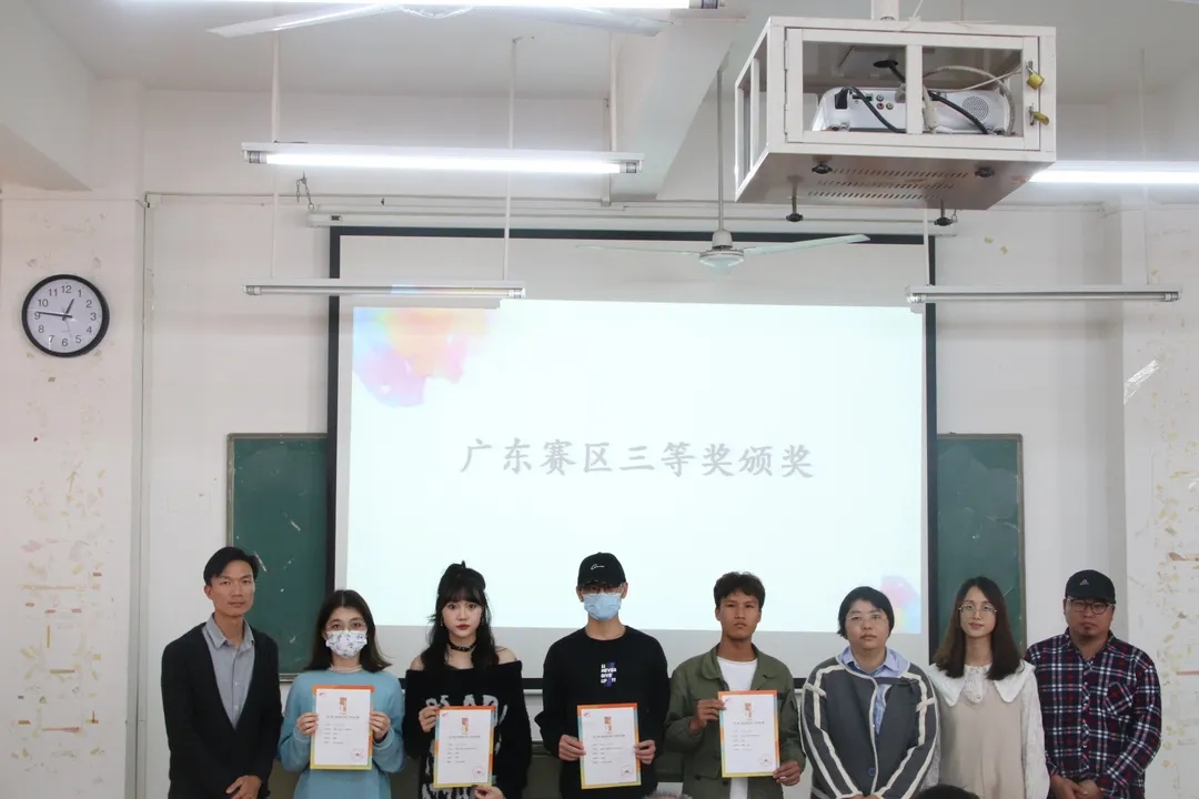 大会第二项颁发大广赛广东赛区获奖者的证书。由罗国智老师、曾晓璐老师、陈展雄老师和彭亚珍老师为获得大广赛广东赛区三等奖的同学们颁奖,蔡筱斌老师和李虹澄老师为大广赛广东赛区二等奖的同学们颁奖,由陈展雄老师为大广赛广东赛区一等奖的同学们颁奖。