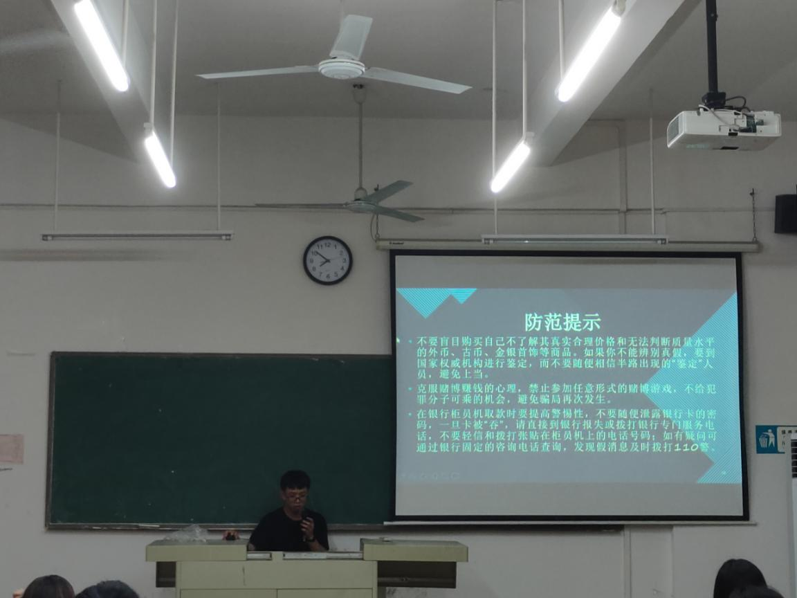 视频观看结束后班长总结并告诫同学们:“不管诈骗手段如何改变,一定要看清诈骗的本质!”并提醒全班同学提高防范意识,遇到电话或者网络诈骗时采取不理会或者举报的方式,切莫因贪小便宜的心理而损失。