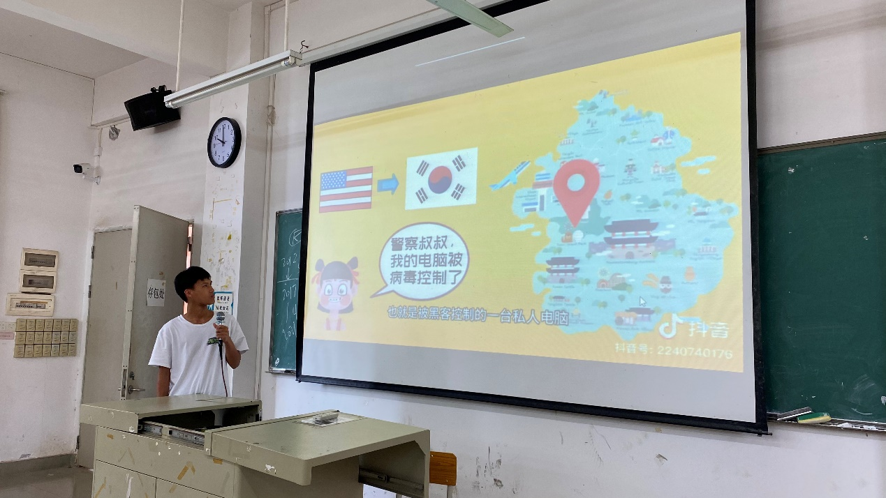 此次活动中,钟善镱班长首先给同学们放映了一部防诈骗的宣传片,视频中各种生动真实的案例让同学们对于诈骗的形式和常用手段有了充分的了解,提高了同学们的对于诈骗的认识。视频观看结束后,钟善镱班长总结并告诫同学们:“不管诈骗手段如何改变,一定要看清诈骗的本质!”提醒广大大学生们提高防范意识,遇到电话或者网络诈骗采取不理会或者举报的方式,切莫因贪小便宜的心理而遭受损失。