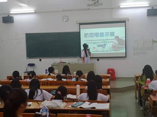 2021年5⽉24⽇下午,20 级学前教育2班在班创教楼201课室召开了防诈骗主题班会。这次班会的召开只要由班委进行组织,班主任苏丽华老师做指导,在班会上,首先班长利用PPT讲解的方式为同学们讲述关于防诈的主要事项,主要强调了诈骗的常见的手段,通过以真实的案例宣讲示警,和同学们讲解诈骗的主要形式;以播放视频的方式,让同学们共同观看和学习骗子常用的诈骗手段,以及观看借款及时还款的重要性,提高借款学生的征信意识,风险意识和感恩意识。利用防诈骗知识竞赛的方式,让更多的同学参与进来,树立通过诚信合法的劳动创造财富的意识,不参与任何存在被骗风险的兼职,特别是刷单和校园平台贷款