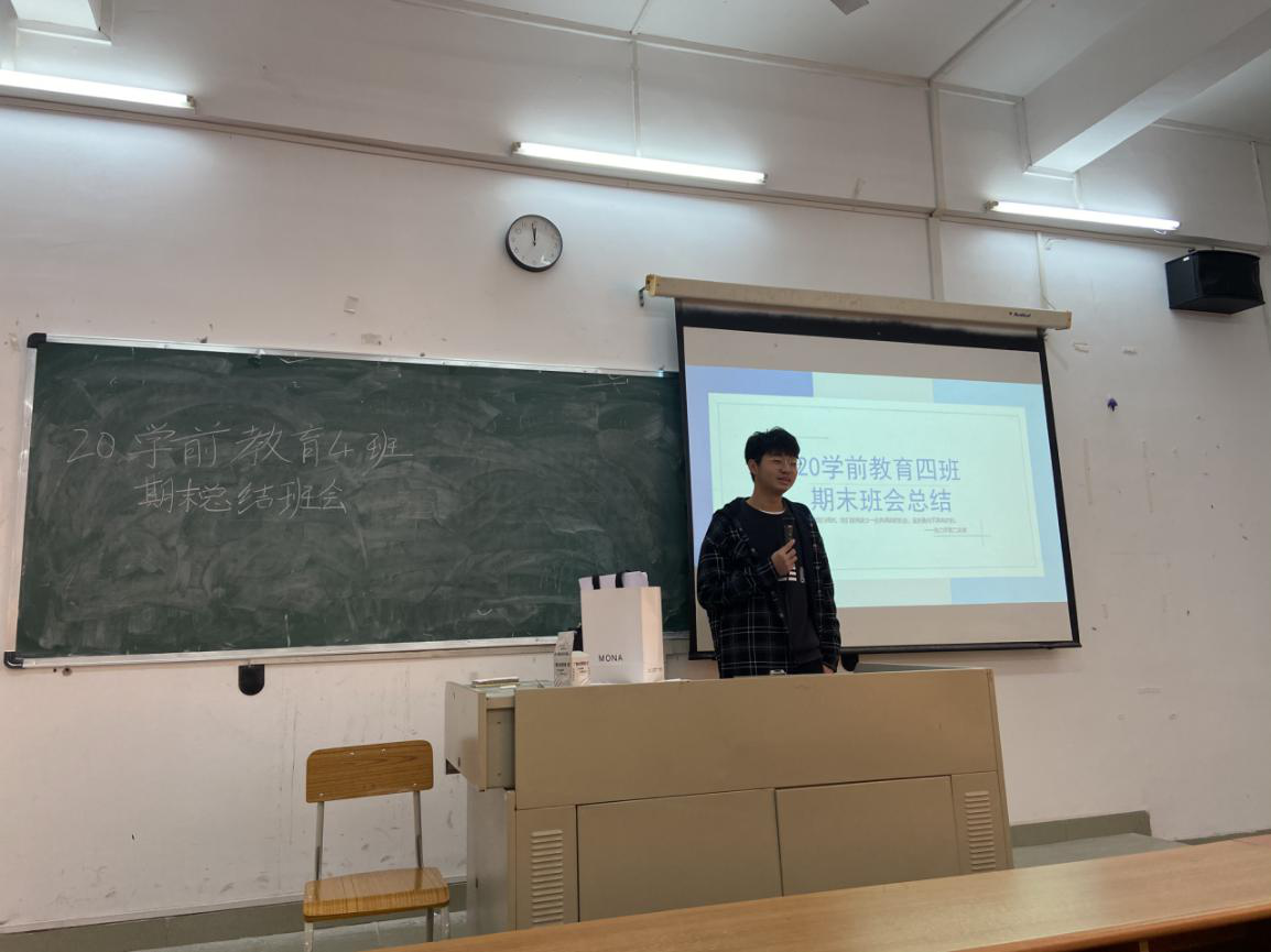 12月30日中午11::55分,20学前教育四班于创教301举行了期末总结班会。本次参与班会的人员有:学前4班班主任张雅静老师以及学前教育4班全体同学。