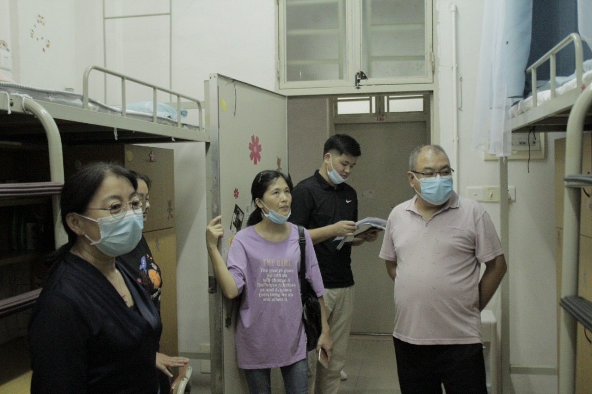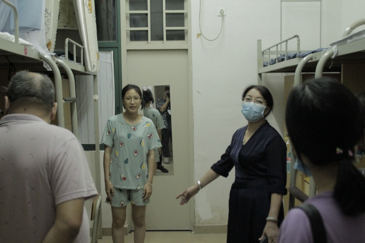 10月11日晚上7:30,刘玉娟院长、赵岩峰副院长、院长助理张计老师、蒋锦宏老师和苏丽华老师走访2020级新生宿舍。