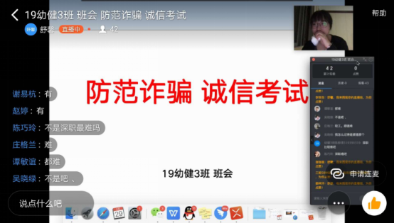 我系于2020年6月23日至6月29日期间,各班级围绕以“金融诈骗和诚信教育”为主题,在线上召开了本学期最后一次班会。同学们积极参与、认真听讲并做好会议记录。